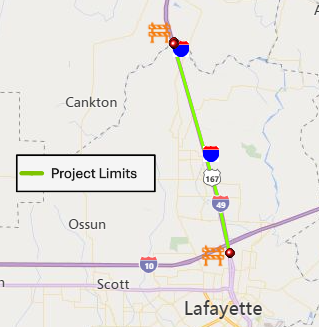 The $43 million project will improve approximately 8.91 miles of I-49 in Lafayette and St. Landry Parishes. With an average daily traffic volume of 85,174 vehicles, this corridor is a critical route for motorists, commerce, and regional connectivity.