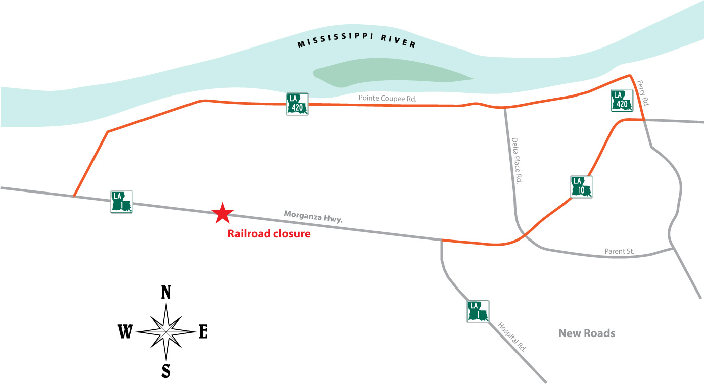 On Tuesday, January 9, 2018 between 8:00 am and 4:00 pm, La. 1 will be closed between La. 420 and La. 10 to facilitate cleanup resulting from a train derailment that occurred last week.
