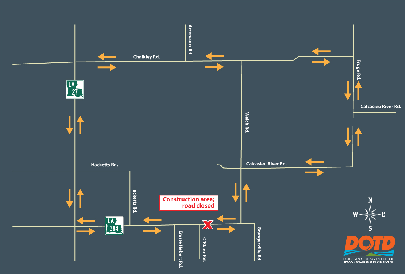 Previous Notice: Closure: LA 384 between O’Blanc Road and Grangerville Road, Feb. 27, 2023-May 1, 2023 – Cameron Parish H.013963