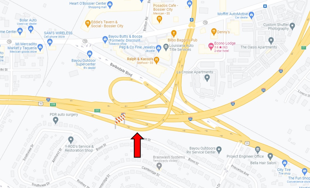 RAMP CLOSURE: I-20 eastbound off-ramp to LA 3 (Benton Rd), Bossier Parish