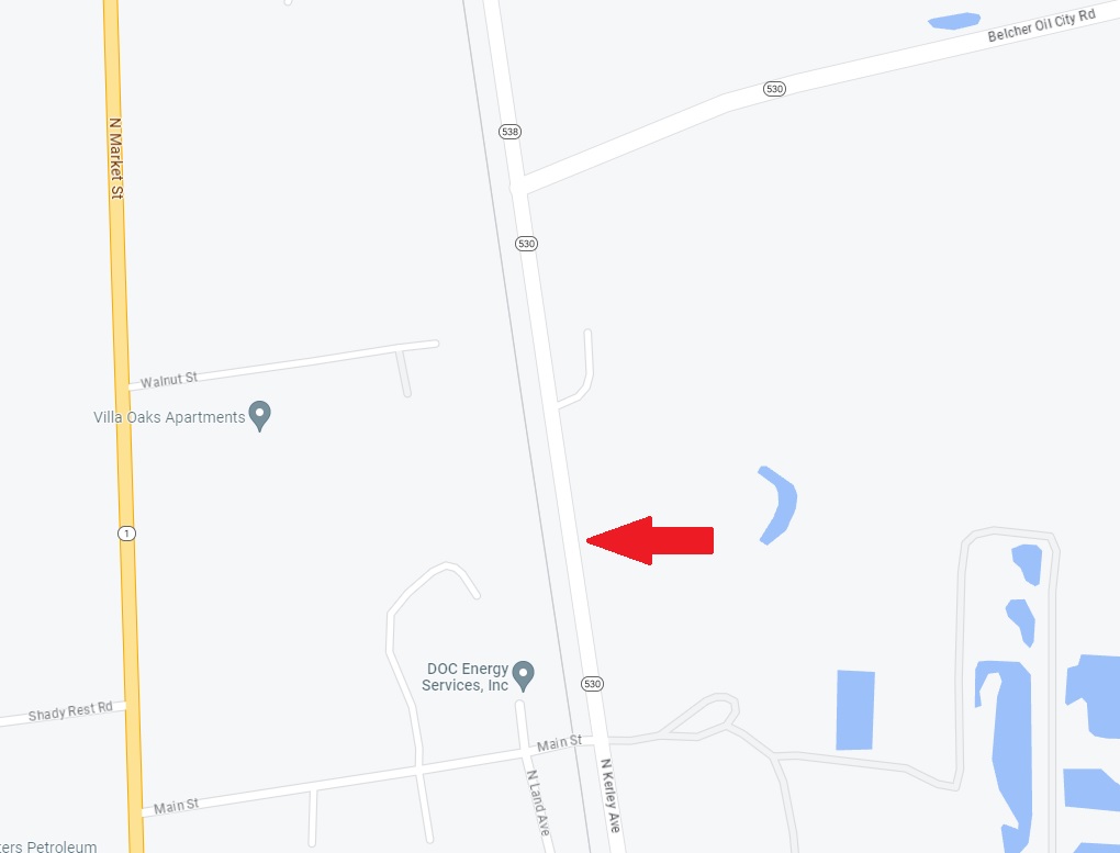 The pipe is located between Belcher Oil City Road and Main Street (see included map).