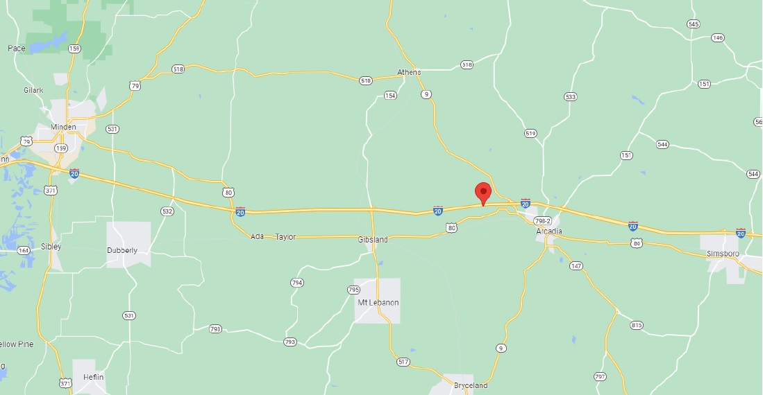 Map indicates location of I-20 bridge near LA 9 in Bienville Parish.