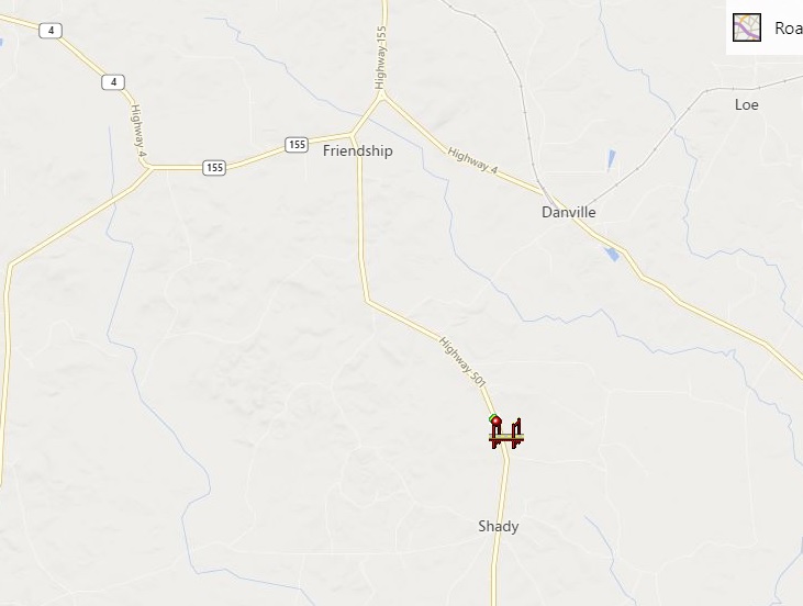 This bridge is located approximately three miles south of the LA 155 intersection near the Village of Friendship.