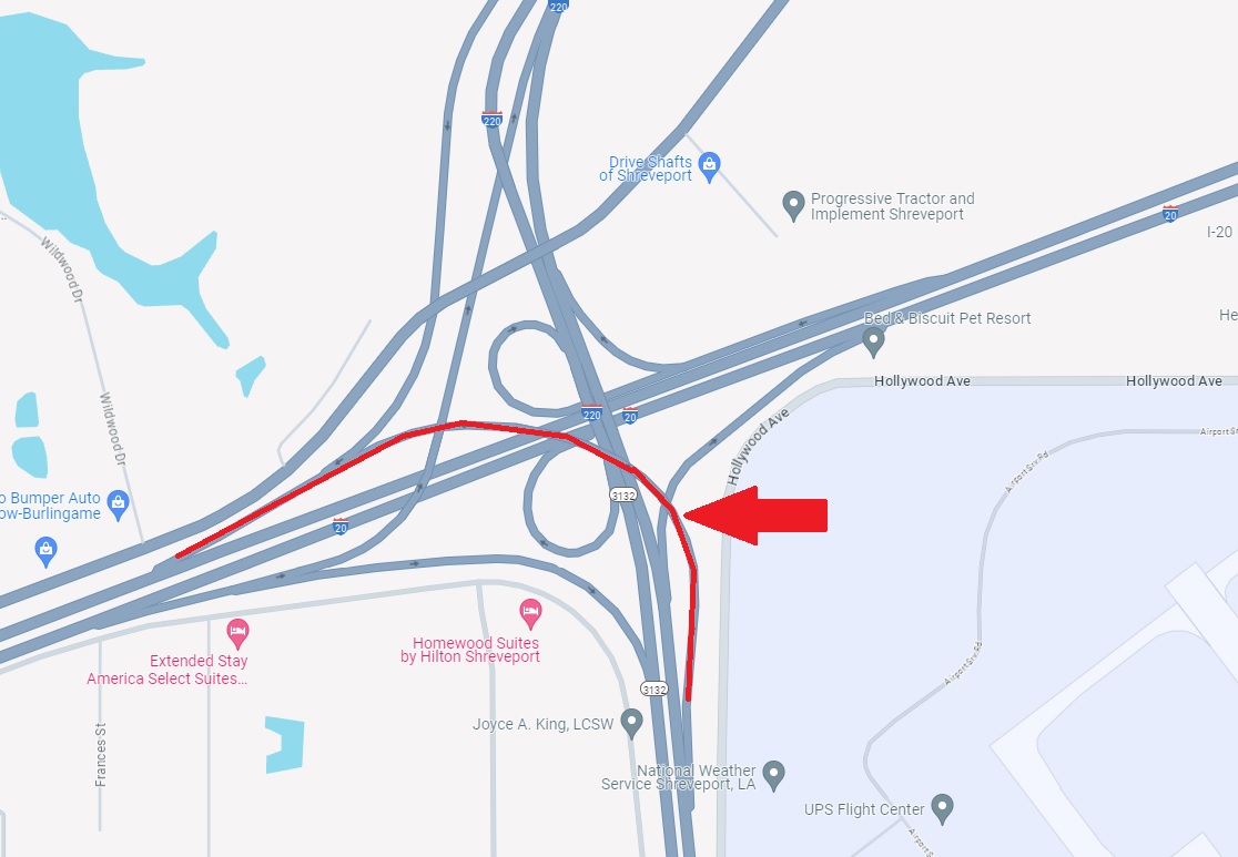 The Louisiana Department of Transportation and Development advises motorists that on Wednesday, May 1, 2024, the LA 3132 westbound ramp to I-20 westbound ramp in Shreveport, Caddo Parish will be closed.