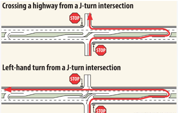 The J-Turns are designed to safely and efficiently manage traffic.