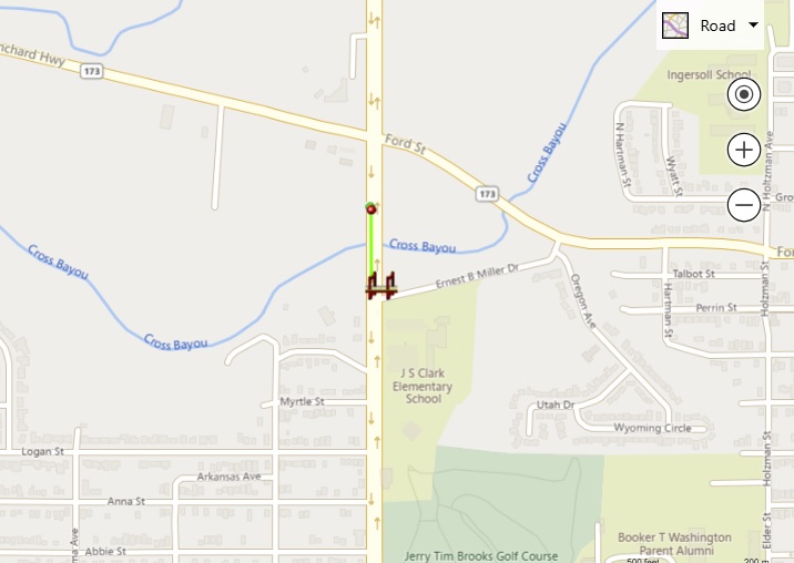 This bridge is located just south of the intersection with LA 173 (Ford Street). See attached map.
