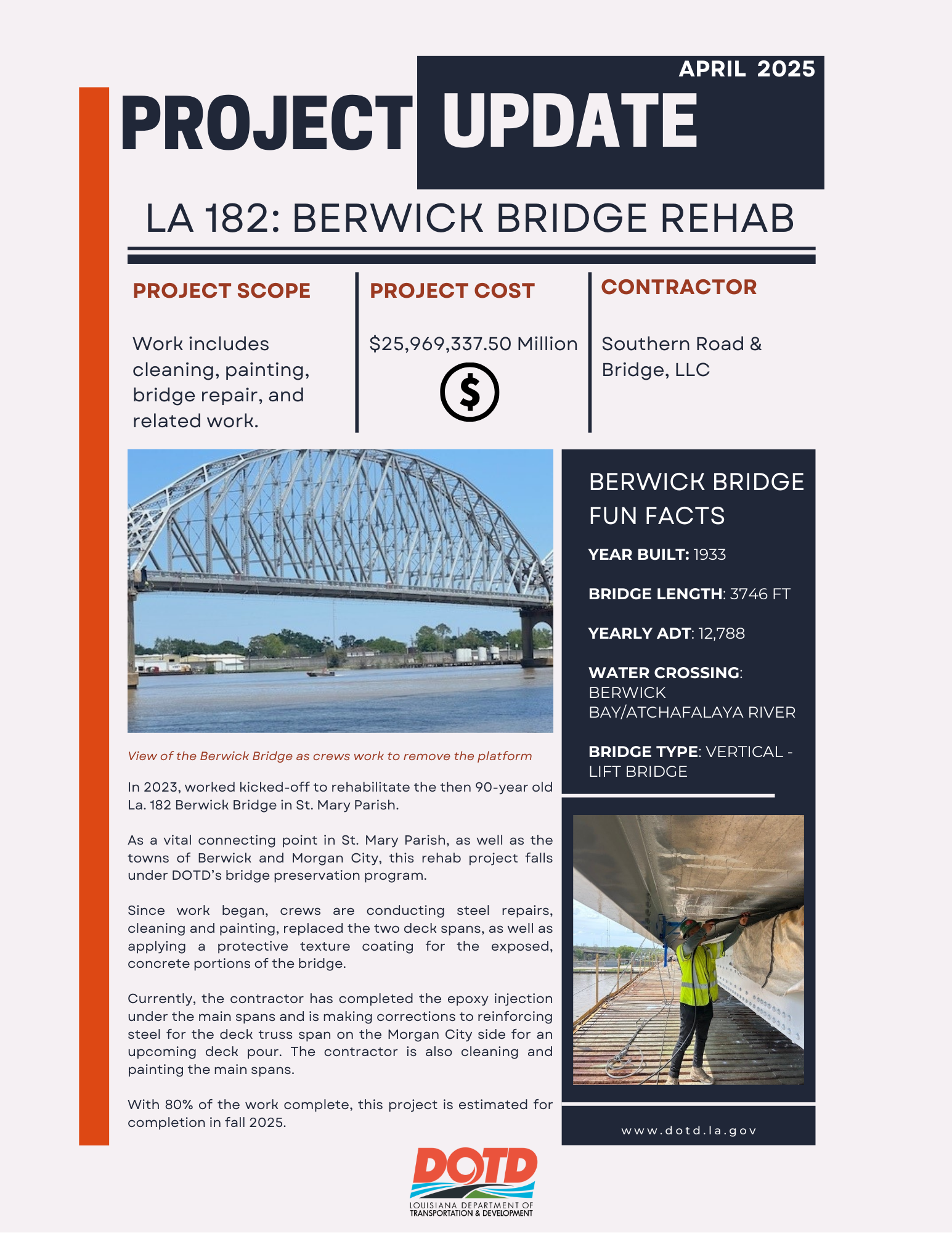 TEST PROJECT UPDATE: La. 182 Berwick Bridge Rehab