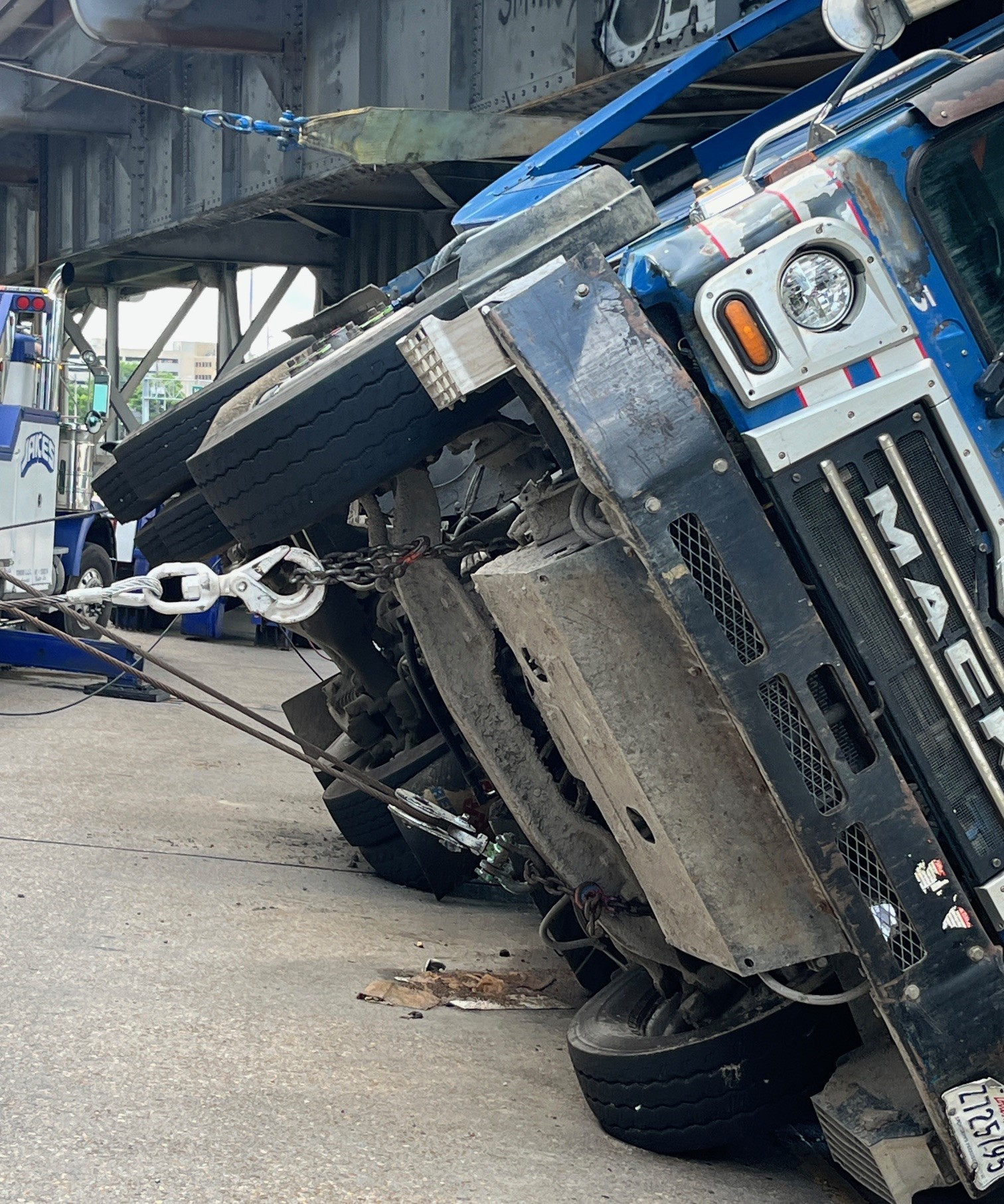 - The trash truck could not be removed because the damage to the highway structure left the support structure unstable. This damage also necessitated the closure of the overhead Airline Hwy. off-ramp.
