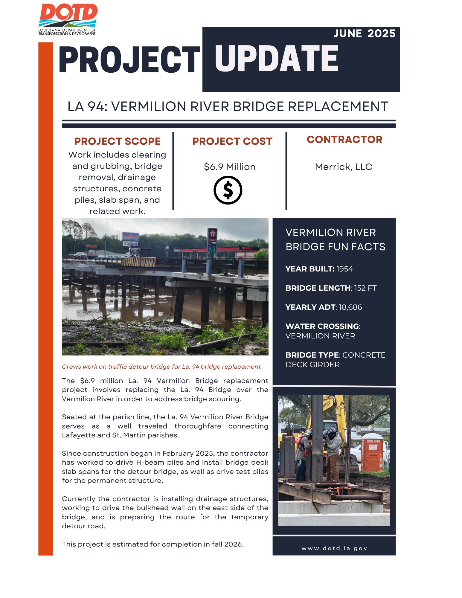 For more information about the La. 94 Vermilion River Bridge Replacement, visit the project page.