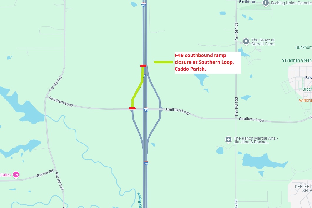 UPDATE - 7/1/2025: The Louisiana Department of Transportation and Development advises motorists that beginning on Monday, July 7, 2025, the I-49 southbound off-ramp at the Southern Loop interchange in Caddo Parish will be closed.