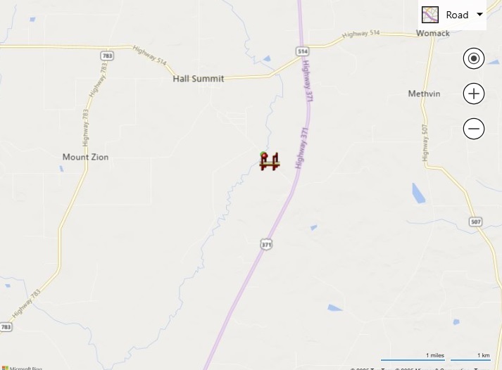 This bridge is located 0.69 miles west of the intersection with US 371. (see included map)
