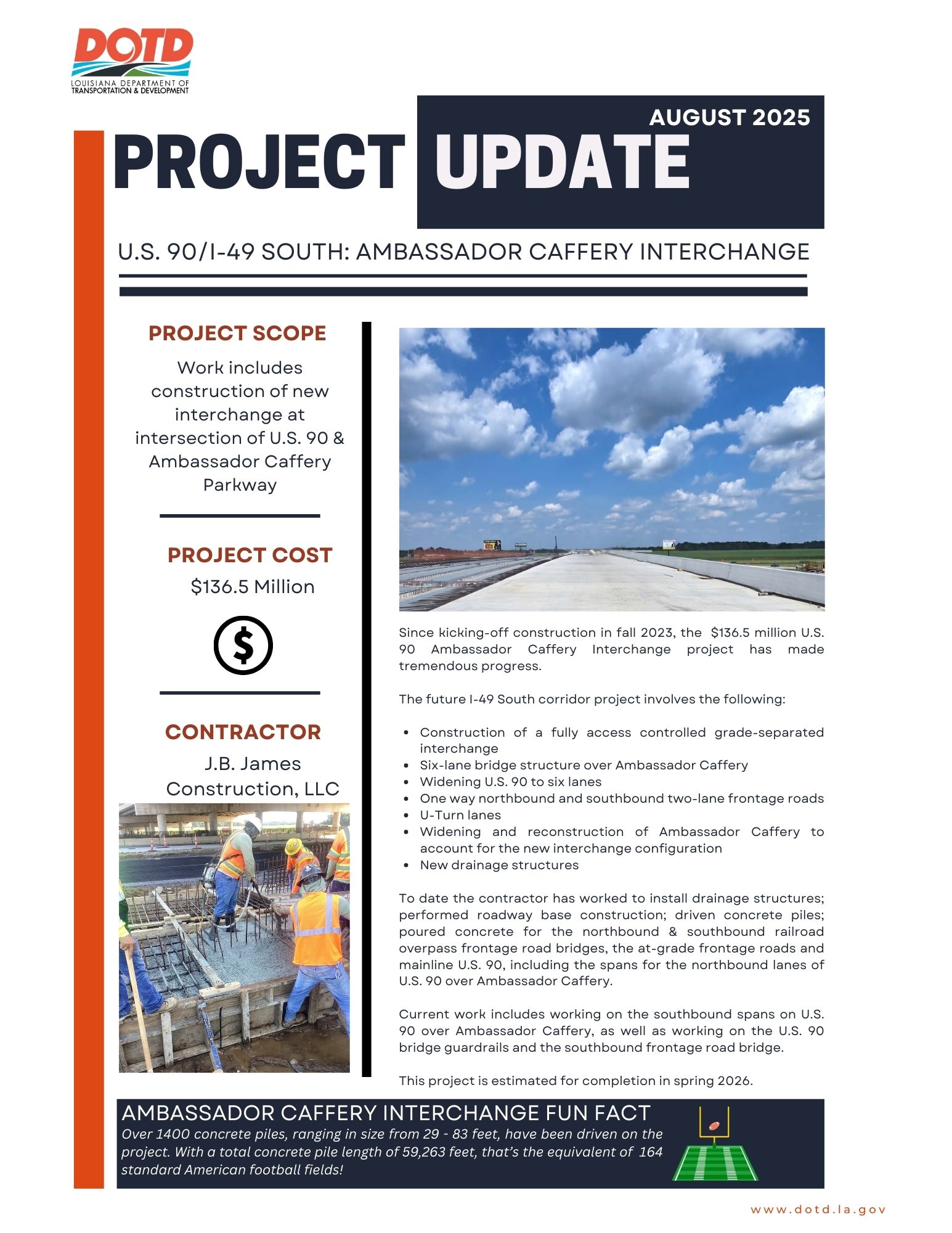 Click image to enlarge For more information about the Ambassador Caffery Interchange Project, visit the Geaux South project page. Additional information: