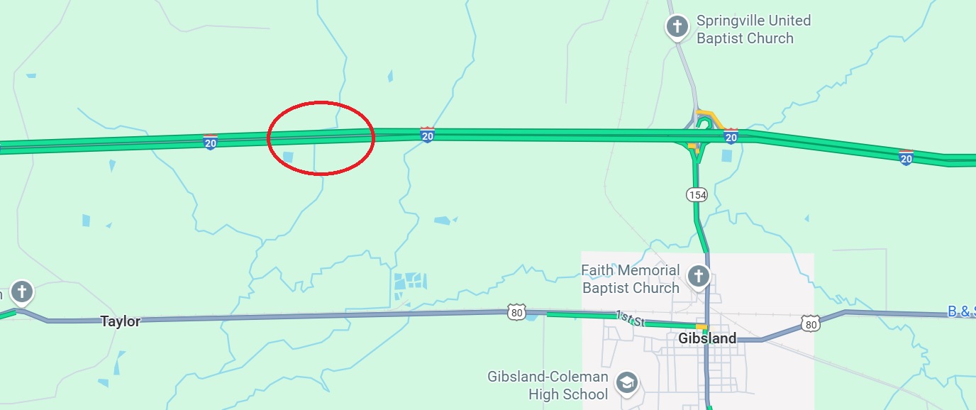 This is located at approximately 2.44 miles west of the LA 154 (Exit 61-Gibsland) interchange. (see included map).