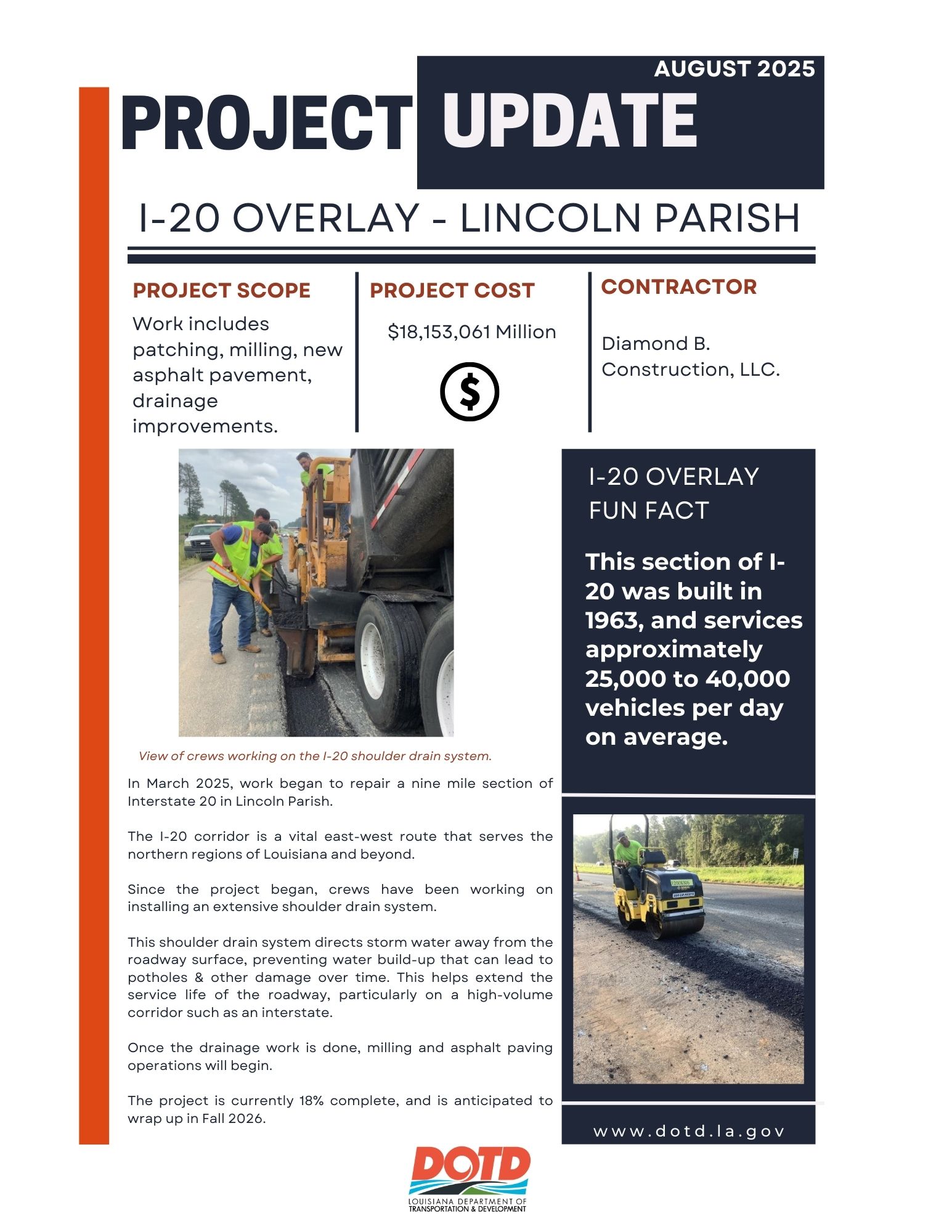 PROJECT UPDATE: I-20 asphalt overlay, Lincoln Parish