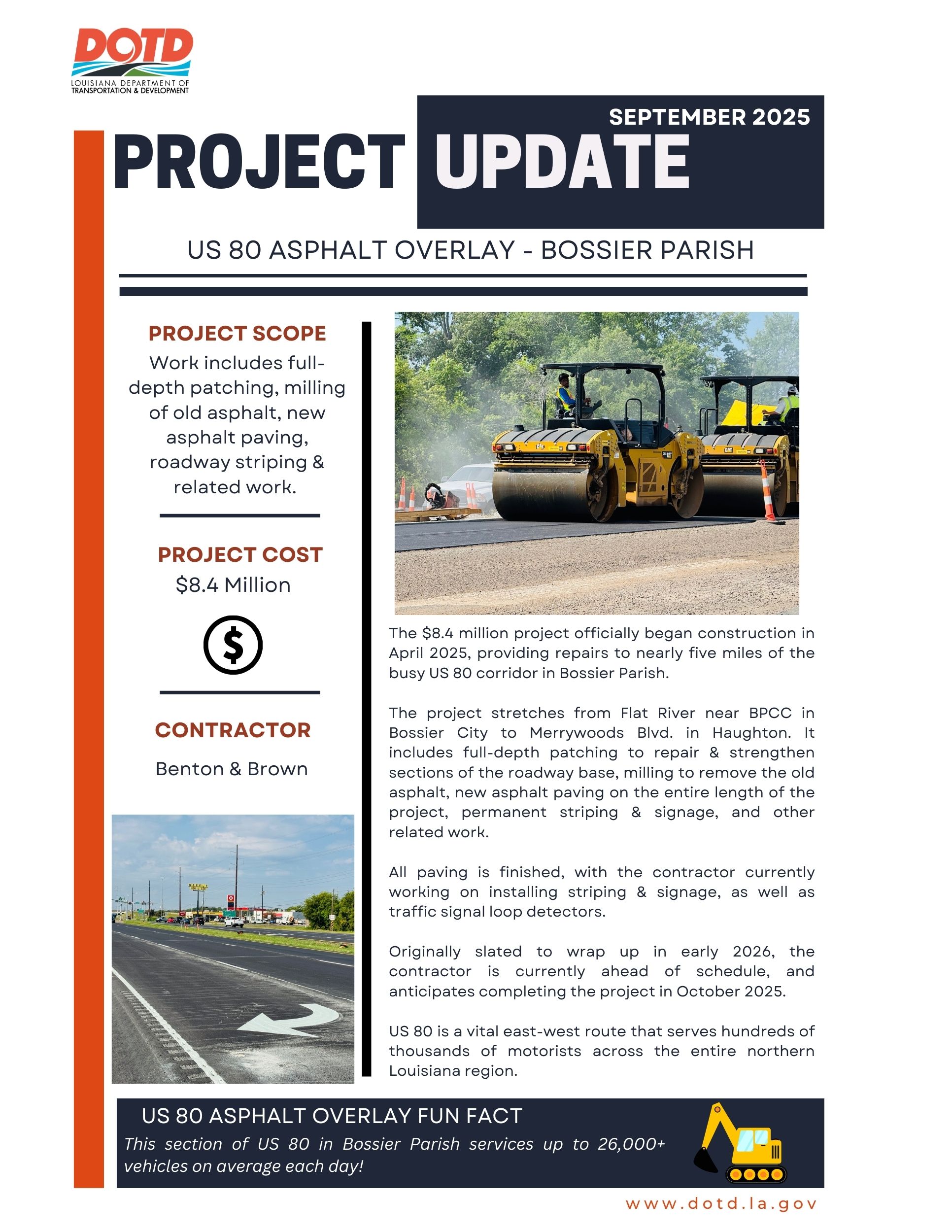 PROJECT UPDATE: US 80 asphalt overlay in Bossier Parish