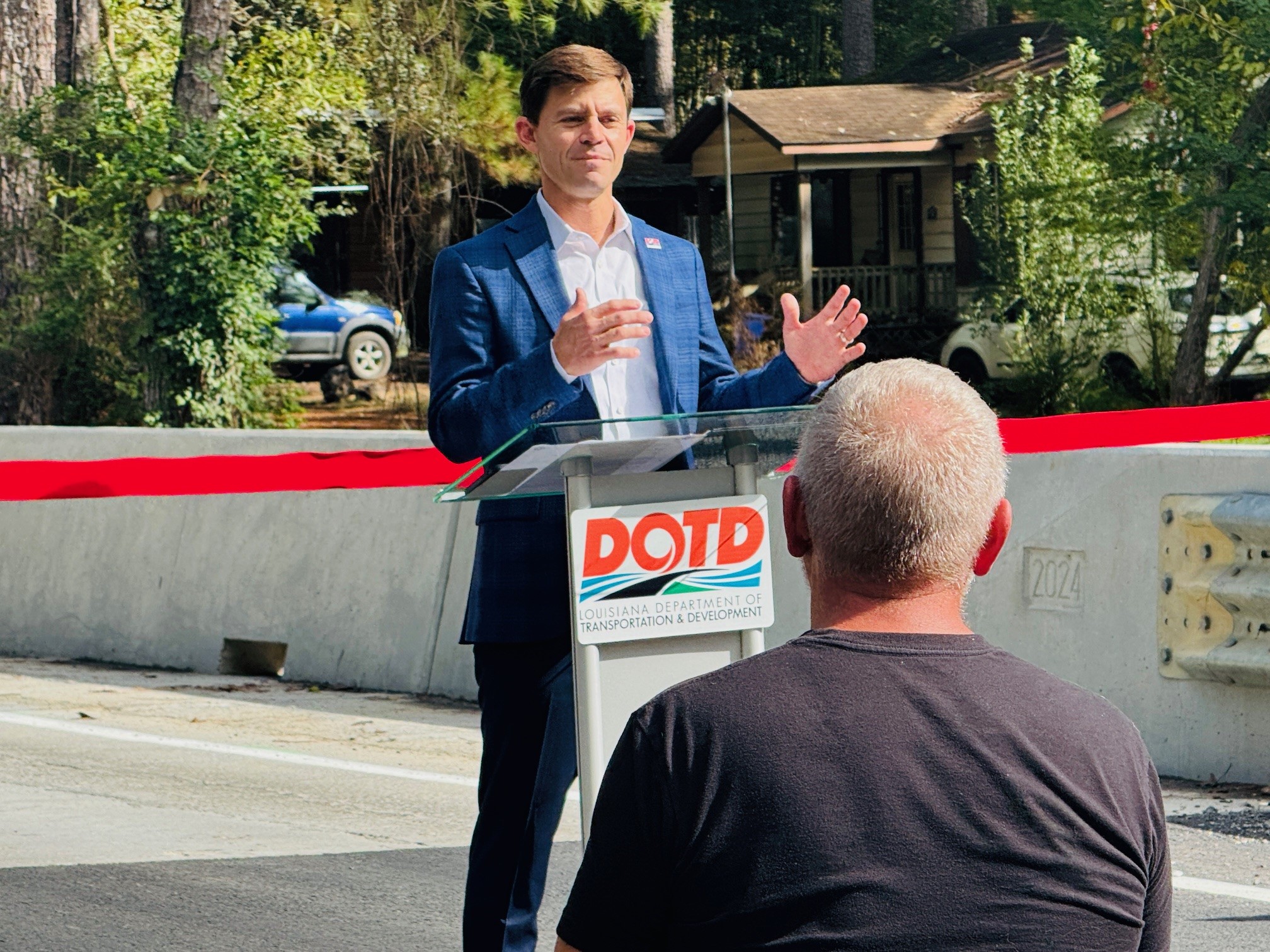 Secretary Ledet, joined by State Rep. Jack McFarland (R-13) and several local officials, gathered to mark the occasion with a ribbon cutting ceremony at one of the bridges along LA 1232, northwest of the City of Winnfield.