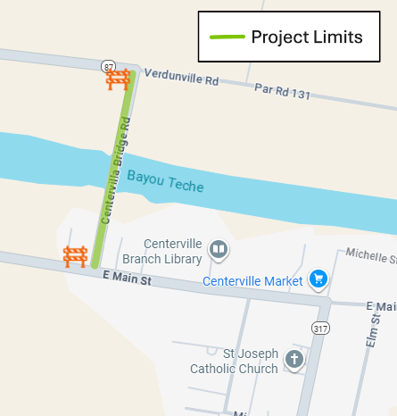 St. Mary Parish, LA – The Louisiana Department of Transportation and Development (DOTD) announces that the Centerville Bridge over Bayou Teche in St. Mary Parish will be closed to all vehicular traffic beginning Monday, March 2 through Monday, April 27.