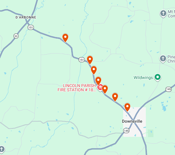 The Louisiana Department of Transportation and Development advises motorists that beginning Monday, March 9, 2026, the contractor will begin installation of cross-drain pipes as part of an ongoing construction project. Seven pipes will be installed that will require a road closure and those seven locations are listed below with a tentative schedule and location map. March 9th Closure 0.3 miles West of Downsville, LA March 10th-11th Closure 0.85 miles West of Downsville, LA March 12th – 13th Closure 1.25 miles West of Downsville, LA March 16th Closure 1.6 miles West of Downsville, LA March 17th-18th Closure 2.0 miles West of Downsville, LA March 19th Closure 2.4 miles West of Downsville, LA March 20th Closure 3.6 miles West of Downsville, LA