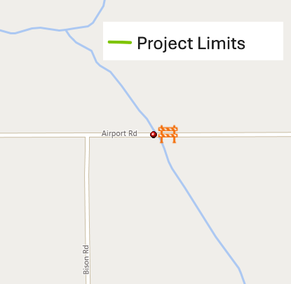 To allow crews to safely complete the work, Airport Road will be closed approximately 0.9 miles west of Sidney Richard Road beginning March 16. The closure is expected to remain in place through May 2026.