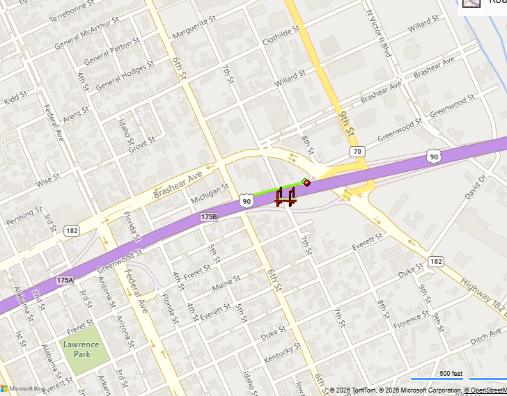 US 90 Westbound On-Ramp at LA 182 over 7th Street, St. Mary Parish, Lane Restriction for Bridge Maintenance