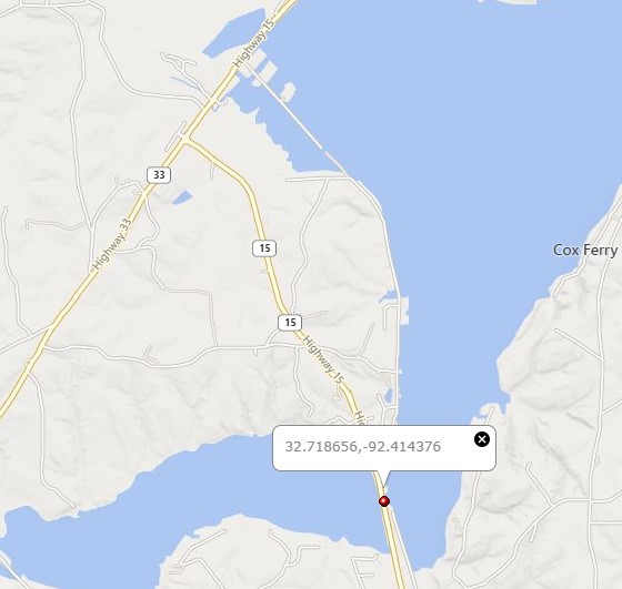 This bridge is located approximately1.9 miles east of LA 33.